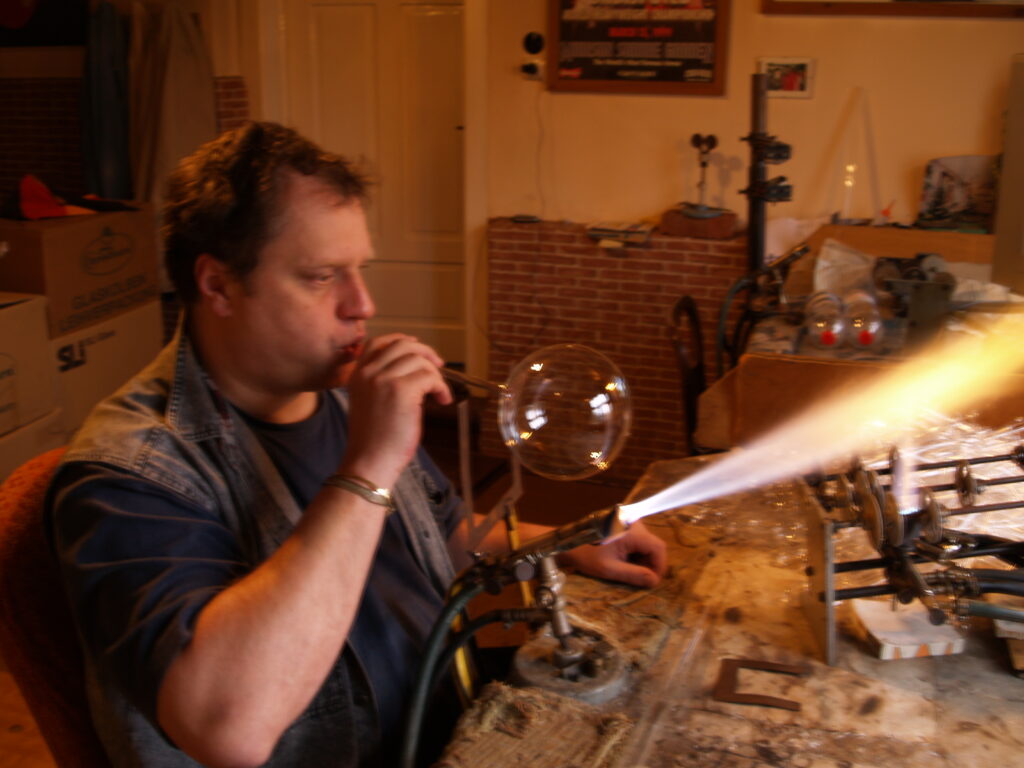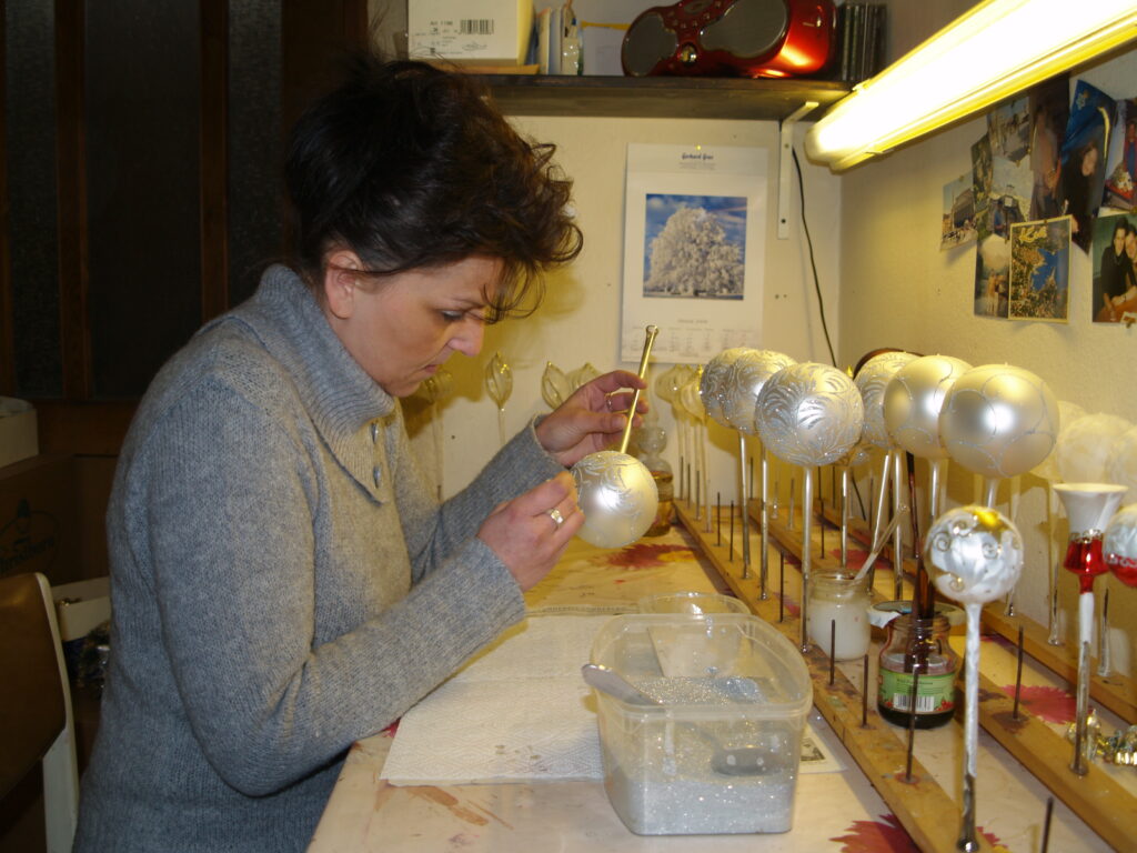In unserer Manufaktur wird nach alten Traditionen Christbaumschmuck hergestellt. Rolf Köhler bläst in seiner Werkstatt die gläsernen Kunstwerke, welche dann versilbert und gelackt werden, um anschließend aufwendig von Hand bemalt zu werden.
